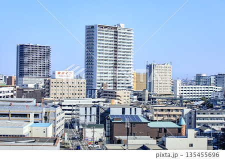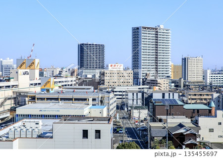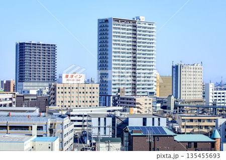 刈谷市、刈谷駅前の高層ビルとマンション群