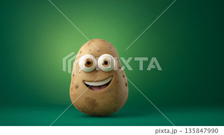 Happy smiling 3d cartoon potato character on green background