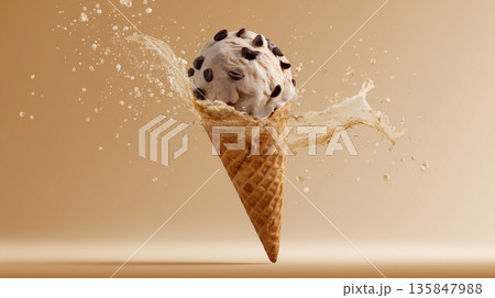 Dynamic ice cream cone with coffee beans and splash