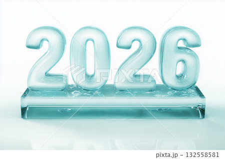 Bright and shining numbers 2026 are displayed, made of transparent glass and surrounded by bubbles. This festive design symbolizes the upcoming Christmas and New Year's celebration.