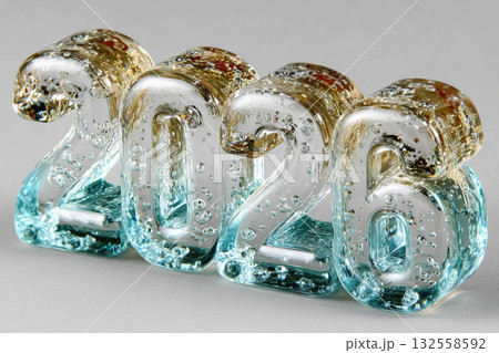 Bright and transparent glass numbers 2026 shine, capturing the spirit of the upcoming year during the Christmas and New Year's festivities. Their unique design adds elegance to the celebration.