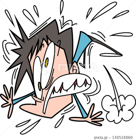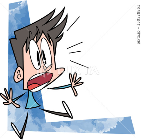 すごい顔をして飛び上がっている男性顔だけアウトラインなし