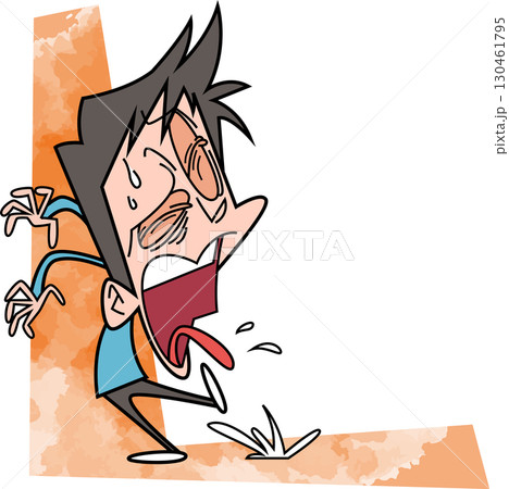 辛そうな表情で口から何かを飛ばしている男性顔だけアウトラインなし