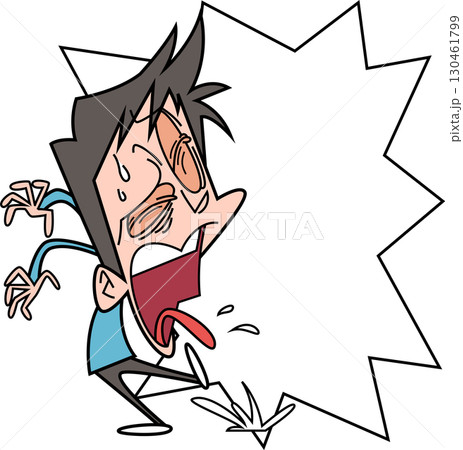 辛そうな表情で口から何かを飛ばしている男性吹き出し付きアウトラインなし