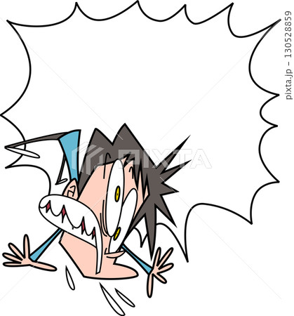 すごい顔をして飛び上がっている男性吹き出し付きアウトラインなし