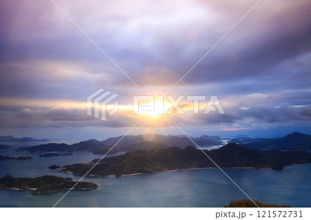 早朝の竜王山からのしまなみの眺望 広島県三原市