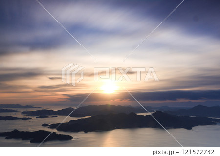 瀬戸内海のしまなみの夜明け 広島県三原市竜王山展望台