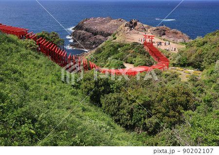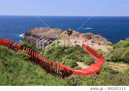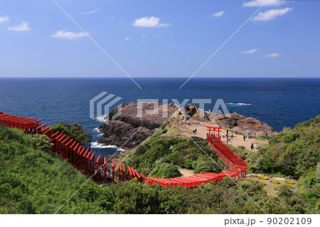 美しい元乃隅神社の赤い鳥居と青い日本海の絶景 山口県長門市