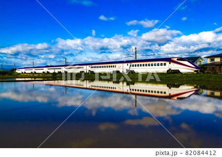 水鏡に映る山形新幹線