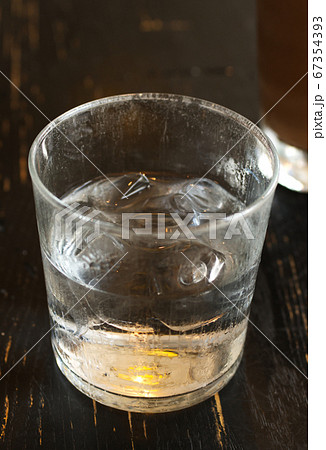 Cold ice water with ice bar in clear glass