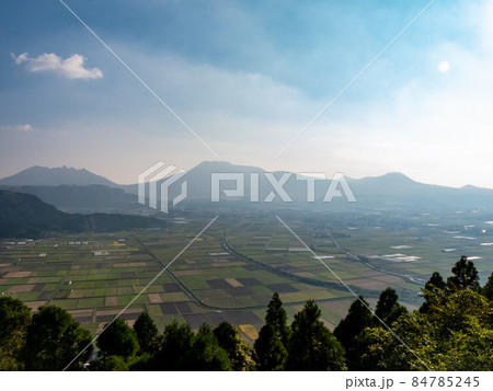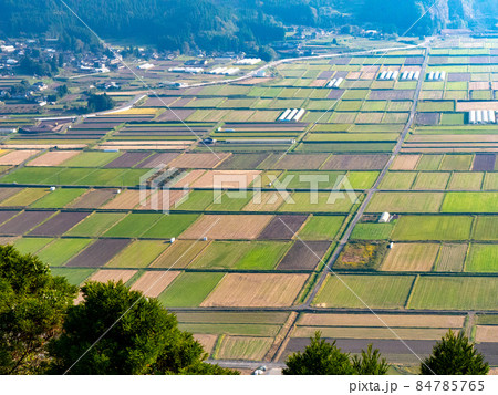 阿蘇山の裾の 城山展望台からみえるカラフルできれいに広がる畑
