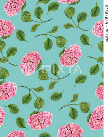 Vintage pattern with Hydrangea flowers watercolor botanical illustration