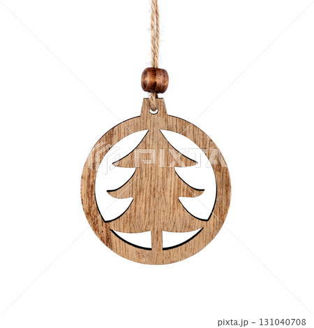 Wooden Christmas tree ornament isolated on white background. Stock photo