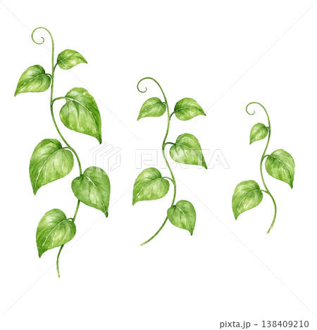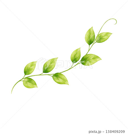 新緑のつる植物 水彩イラスト 垂れるナチュラルあしらい素材 シンプルでやさしい植物デザイン