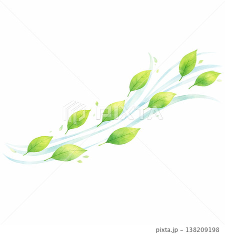 新緑の葉 水彩イラスト シンプルな単葉のナチュラル素材 やさしい植物デザイン