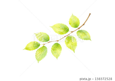 葉っぱ 水彩イラスト 枝付きの新緑あしらい素材 ナチュラルでシンプルな手描き風 シリーズ素材