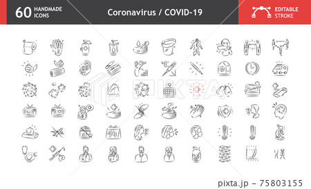 Coronavirus and COVID-19 icons. Handmade, editable stroke.