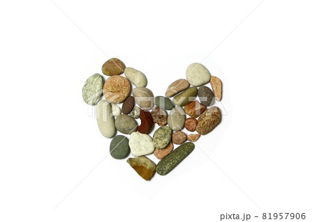 Heart of stones flat lay isolated on white background