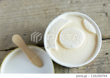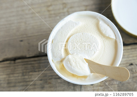 テーブルの上のアイスクリームとスプーン