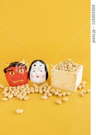 節分の豆と鬼とお多福