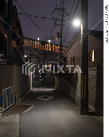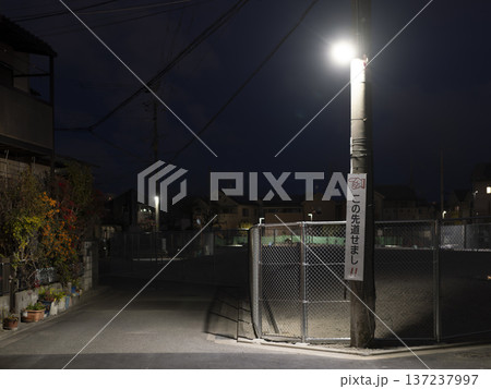 街灯に照らされた住宅街の路地