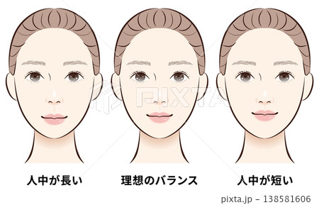 人中眺めの顔バランス(クローズアップ)美容解説素材