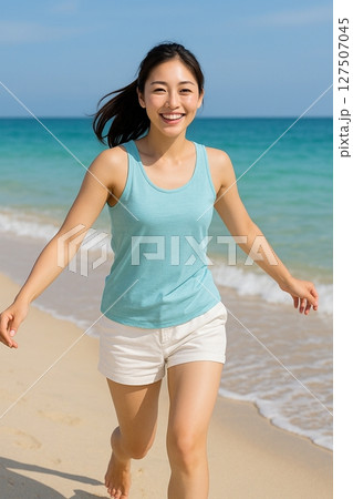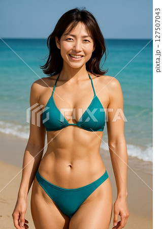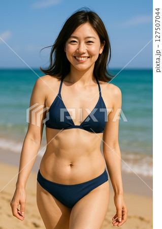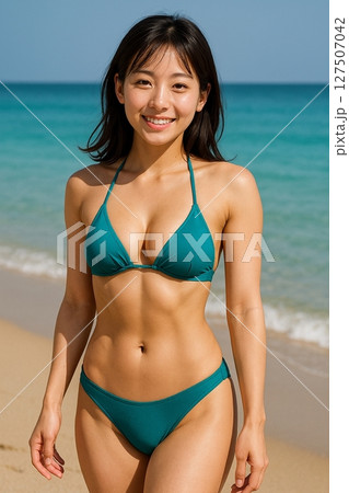 ビーチにいる水着の若い女性