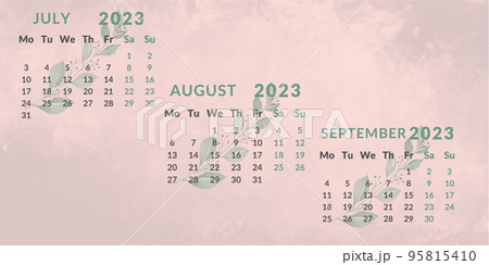 Calendar 2023 by quarter.Months June August September.Week starts on Monday.