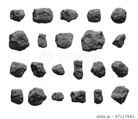 Set of asteroids isolated on white background.