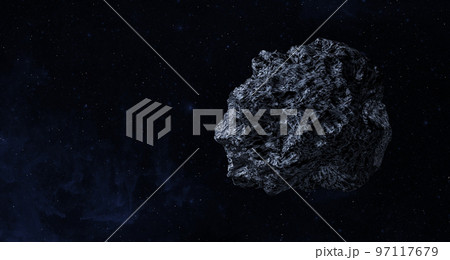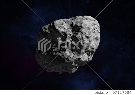Asteroid or a meteorite flies in space.