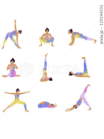 A woman practicing yoga asanas. Healthy lifestyle and sport. Body balance practice. A girl stretching. People doing sports, workout. White background