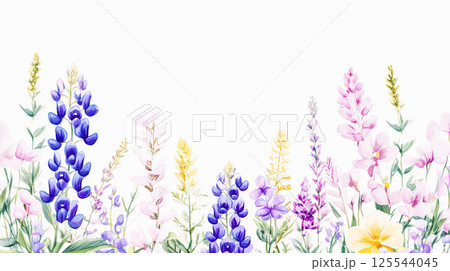 Watercolor illustration of various colorful wildflowers, showcasing a delicate, artistic style with vibrant hues against white backdrop Spring flowers This is AI-generated item