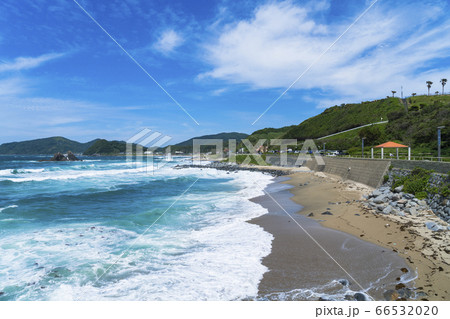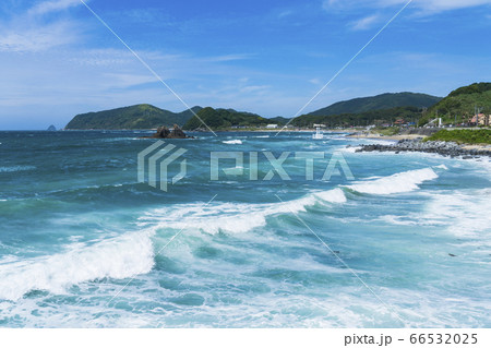 糸島市二見ヶ浦の青い海と白い波しぶき