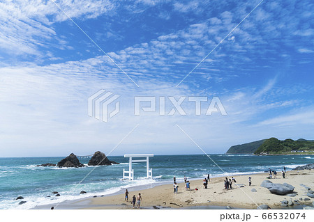 糸島市二見ヶ浦夫婦岩の青い海と白い波