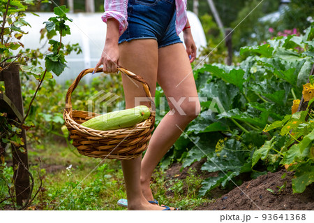 faceless happy smiling woman farmer hold a basket of vegetables from her garden.