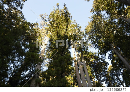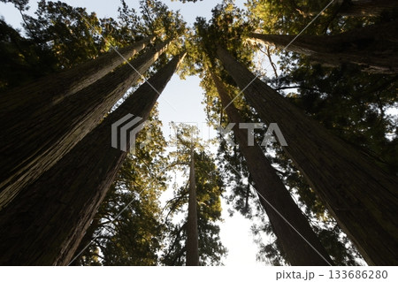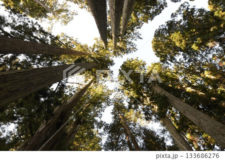 見上げる杉木立