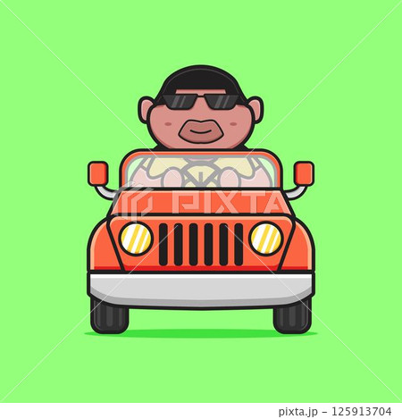 Cute fat boy is riding scooter mascot cartoon icon clip art illustration