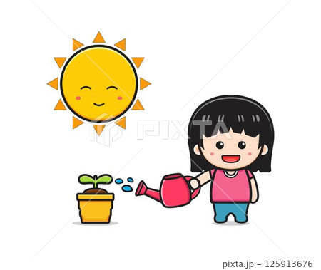 Happy cute kid girl body part anatomy cartoon icon clipart illustration