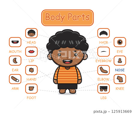 Happy cute kid boy body part anatomy cartoon icon clip art illustration