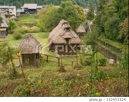 屋根を笹の葉で葺いた笹ぶき屋根の民家 京都府宮津市上世屋