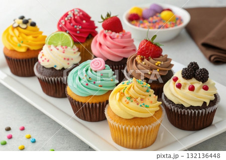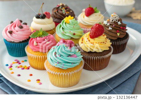 various flavor of cupcakes on white plate studio shot