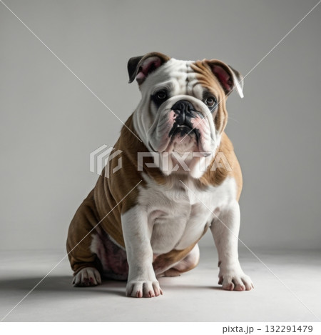 Portrait of Bulldog sitting studio shot