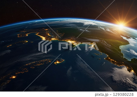 Earth view from space with sunlight