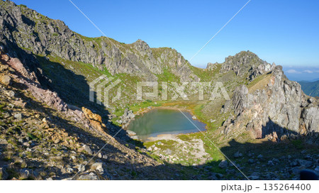 【秋田駒ヶ岳】男女岳山頂直下にある阿弥陀池の景色