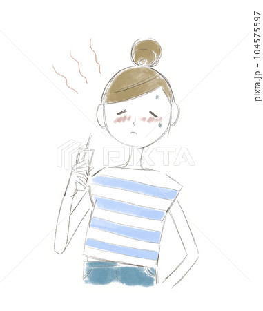 暑くて汗をかいている女性