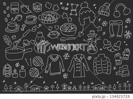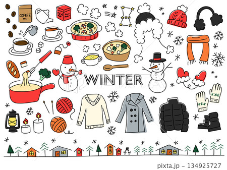 冬のものを集めた手描きイラストセット