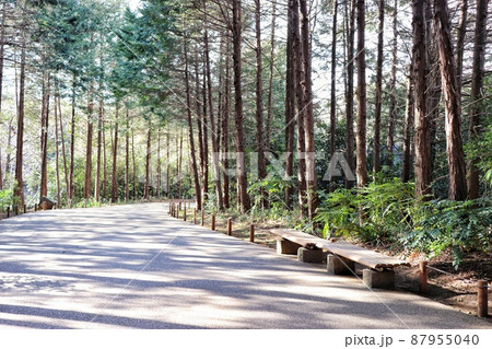 ベンチと並木道(横)