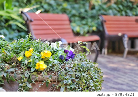 パンジーの鉢のズームアップ