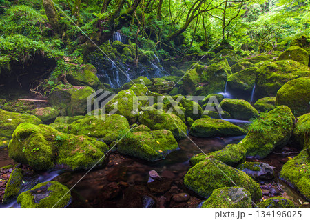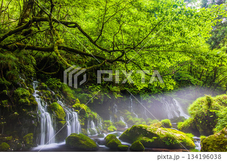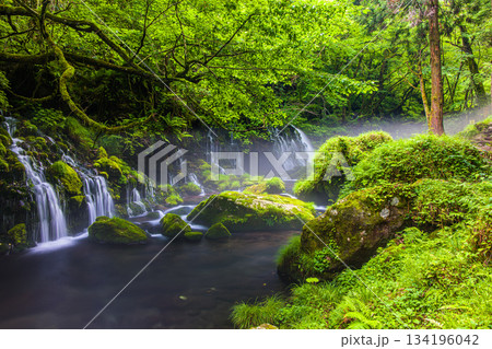 【秋田県_元滝伏流水】鳥海山が生む伏流水が作り出した川霧 夏 7月