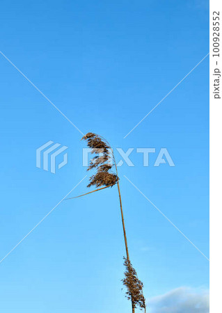 Reed against a clear blue sky moved by the wind